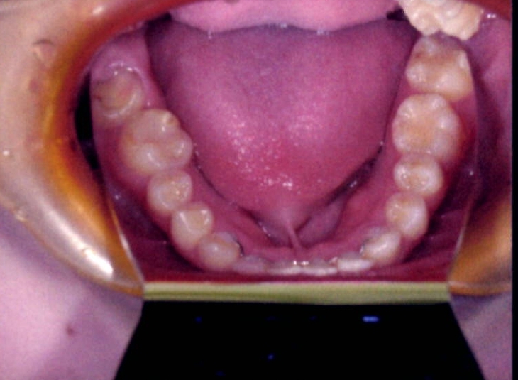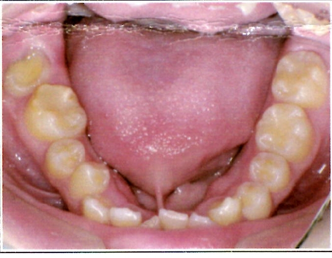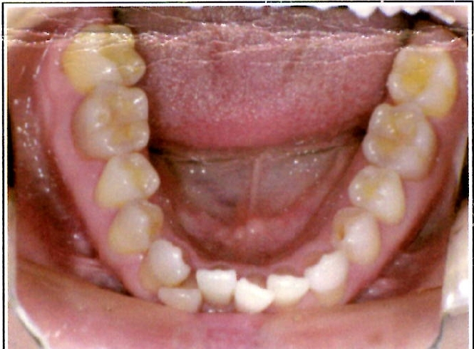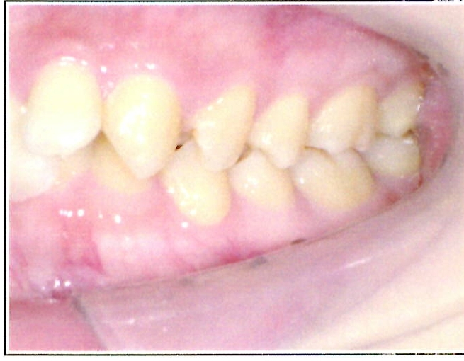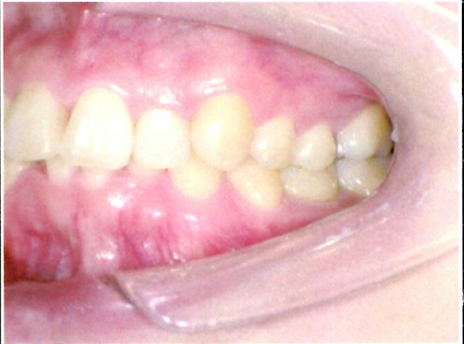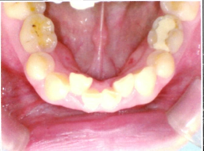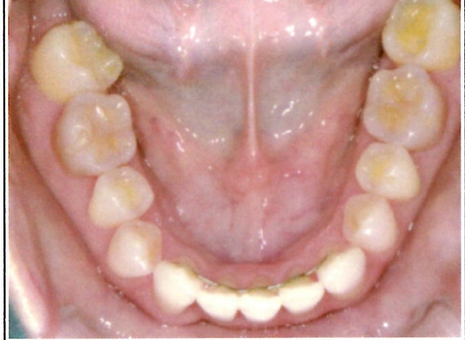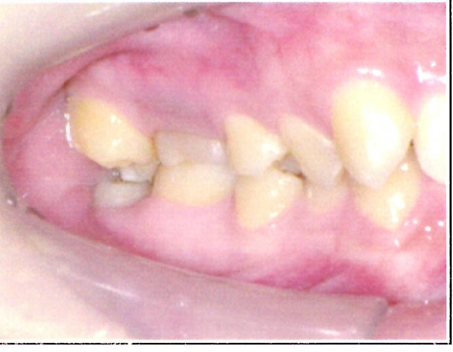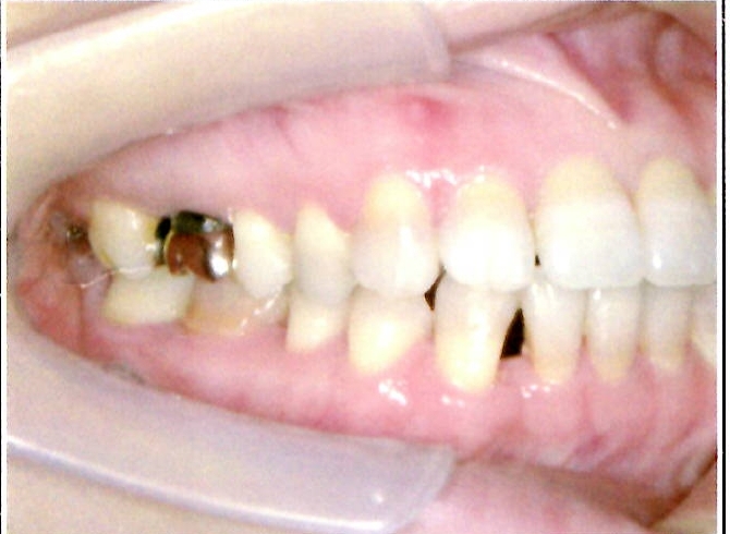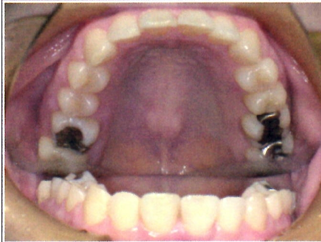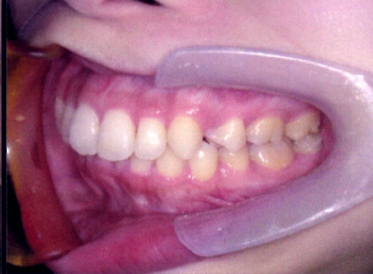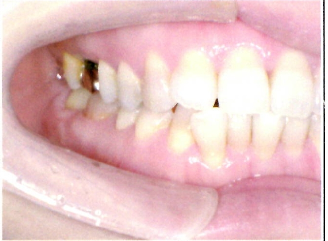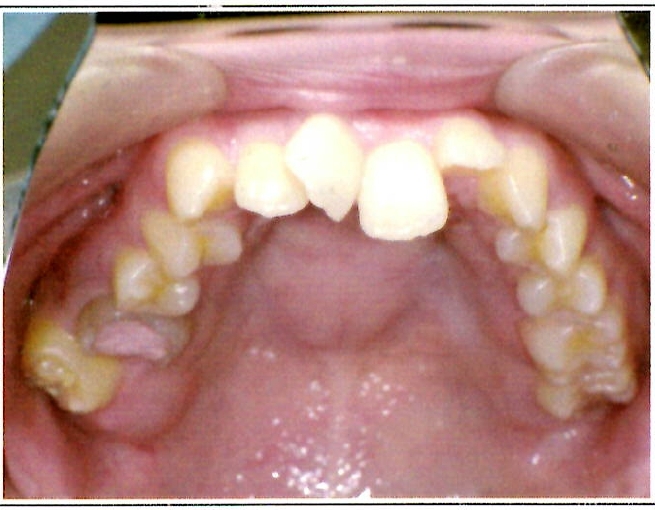 | 主訴・治療前の状態 | 著しい叢生(歯並びのガタガタ)があり、また6歳臼歯(第一大臼歯)が破折していた状態でした。 |