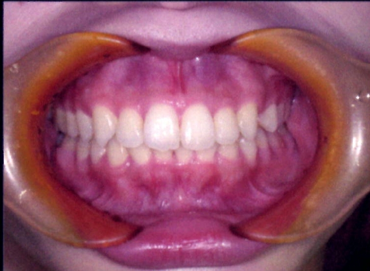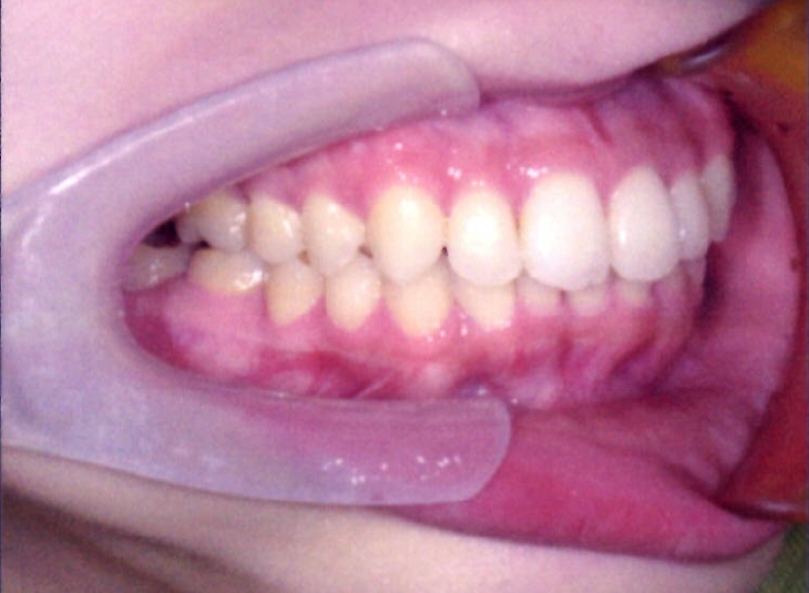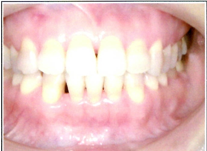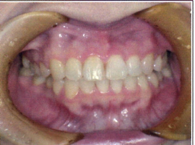 | 主訴・治療前の状態 | 過蓋咬合(噛み合わせが深く、下の前歯が見えない状態)により歯ぎしりができない状態でした。また、上下顎前歯部に叢生(クラウディング・ガタガタ)がありました。 |