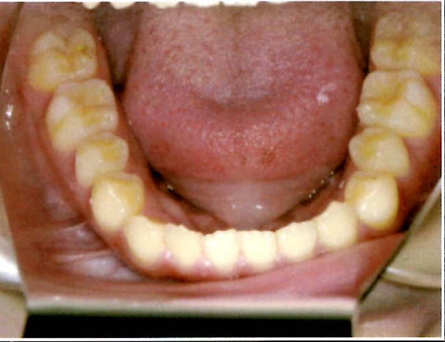 | 主訴・治療前の状態 | 下顎前歯部に叢生(ガタガタ)があり、歯ブラシが届きにくく清掃性に問題がありました。また、見た目も気にされていました。 |